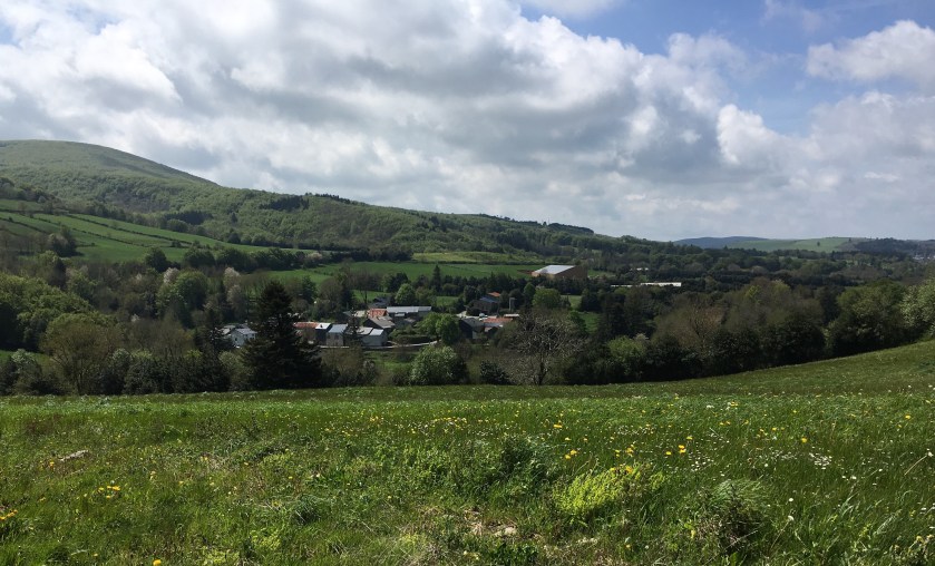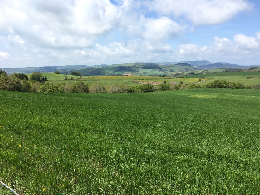 Today marks a geographic change. Morning water flows towards the Mediterranean Sea while afternoon water flows towards the ocean. Rugged mountains are replaced by rounded rolling mountains making for easier walking.