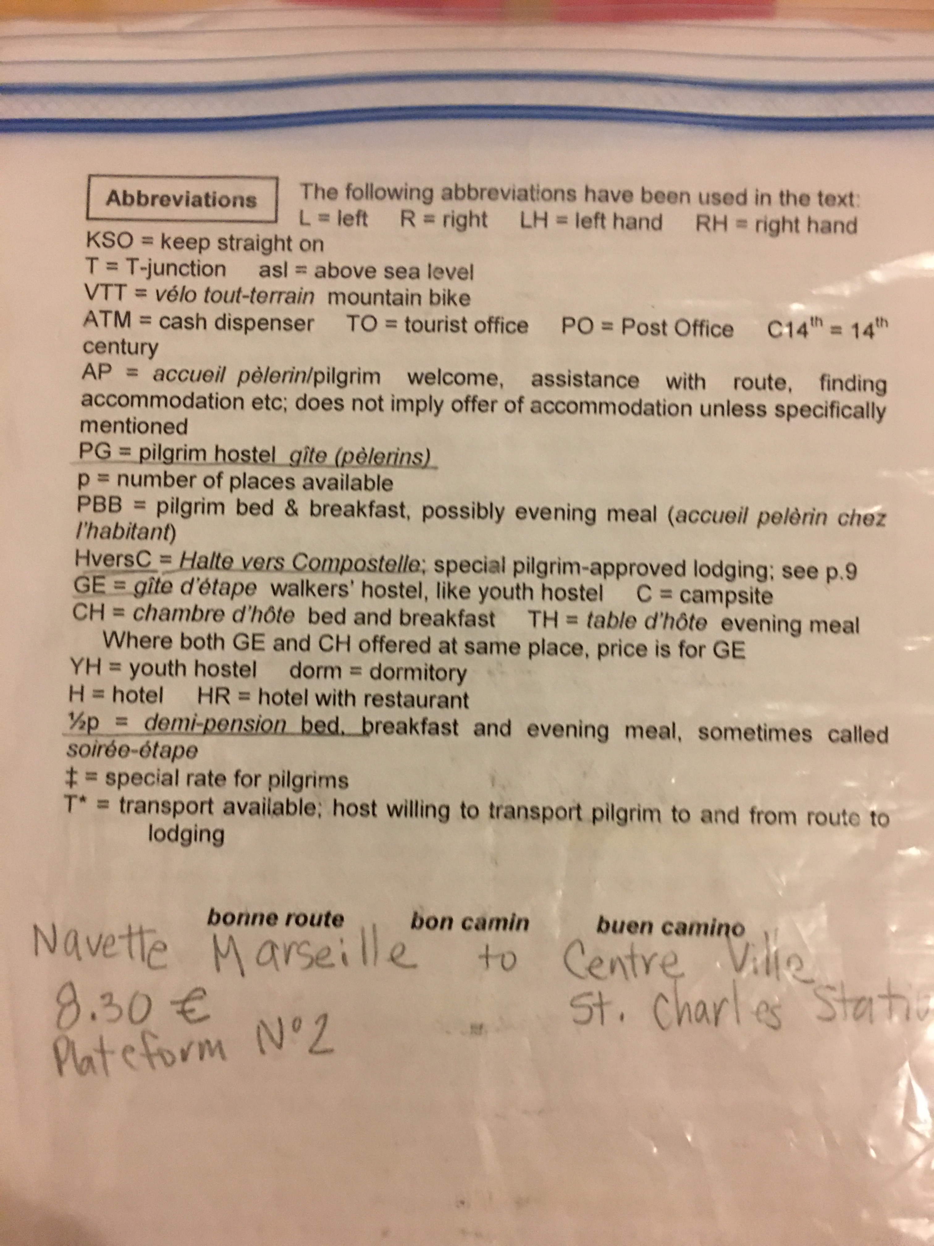 “Pilgrim Guides to the roads through France to Santiago de Compostela,” “I. Arles to Toulouse ” and “II. Toulouse to Puente la Reina.” Two of three guides carried. Though written in English, many terms, descriptions, and details are French.