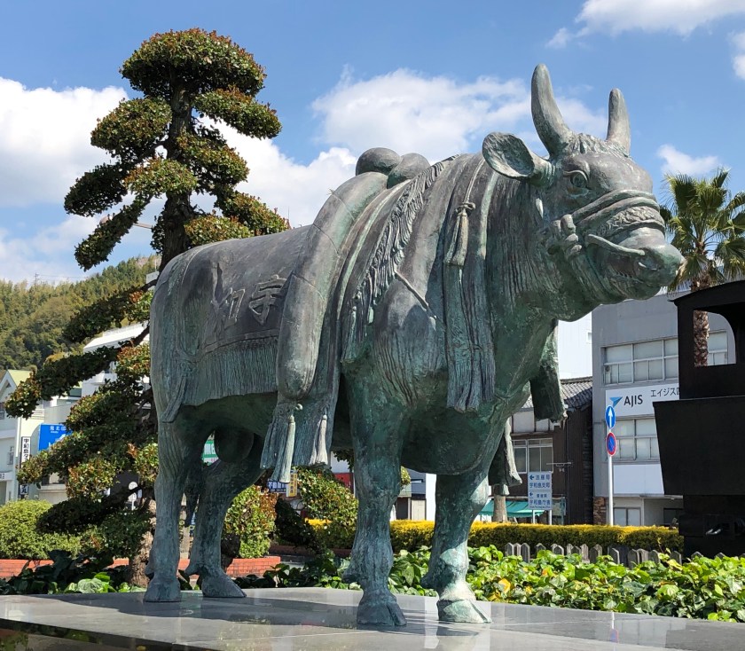 - Bull Statue – Since 1800’s bull fights (bull against bull) has occurred in Uwajima. There is a huge city bull fighting arena.
