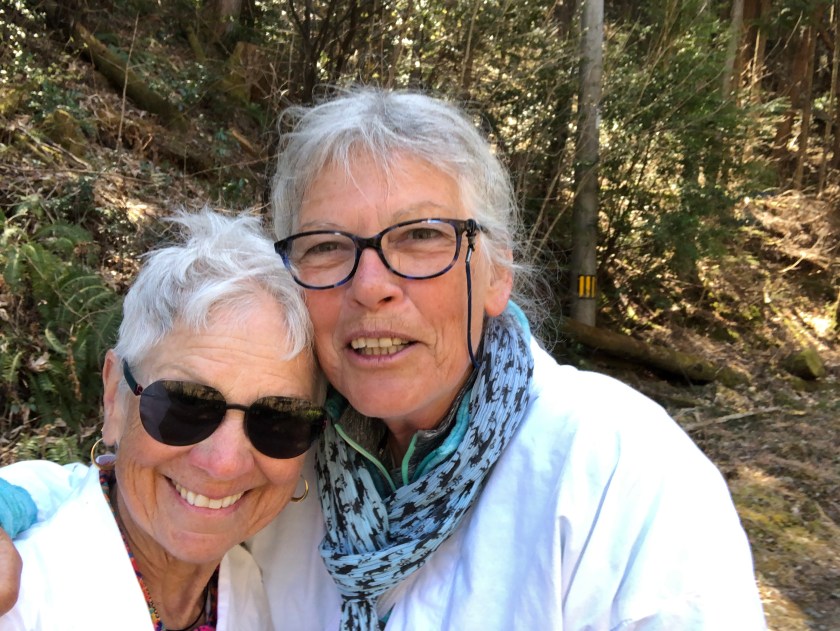 Parisian Christine C. and I met our first day walking the Camino Santiago in France. We became dear friends. Today our 88 Buddhist Temples pilgrimage crossed paths. It was an out-and-back route. I was walking towards Temple #45 and Christine was walking from Temple #45. There we stood in a Japanese forest face-to-face. She traveled east half-way around the world while I traveled west-halfway around the world. Amazing how it all came together at this one moment. We had been emailing each other so we knew our itineraries were getting awfully close. Our reunion was as though no time had passed since we last met. A day to cherish.