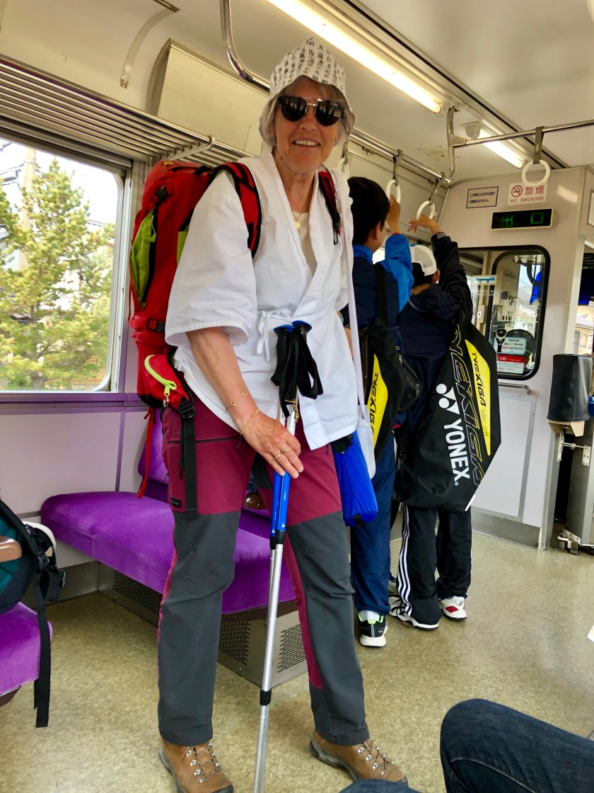 Christine and I take our last selfie before she disembarks the train. A final goodbye. As her stay in Shikoku is two months, she has the luxury of walking by the sea. I must continue on “rapid” transit as my stay is less than six weeks.