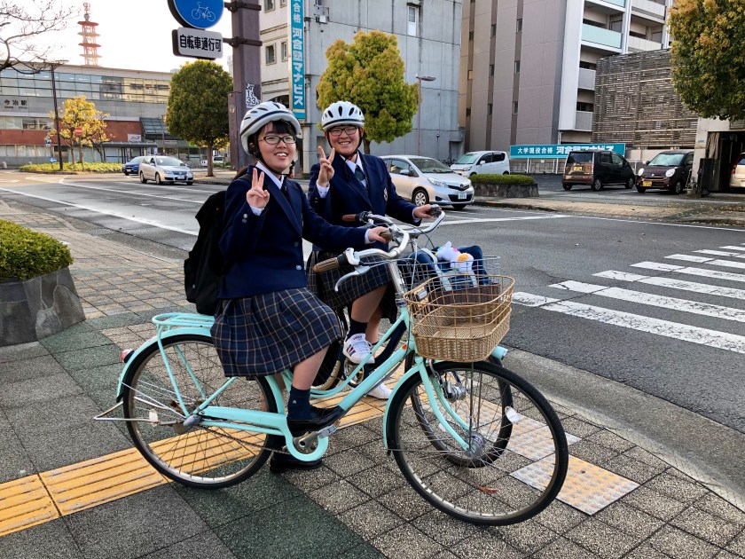 School girls starting their day in their smart uniforms. These sturdy bikes, without gears, are the popular models. They are peddled by young and old. As I plodded up a hill later in the day, an elderly man glided by me on his bike. Such fit people.