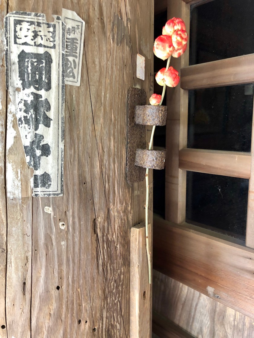Fortune Cat has places of honor at Temple #81. A lady tending to shrine flowers along the road gave me this flower o-settai which I offered to the temple.