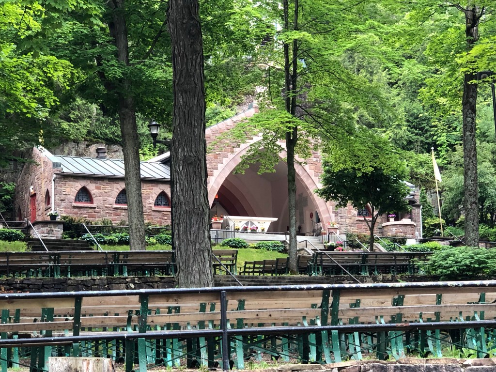 Open air Our Lady of Lourdes Sanctuary was set into the face of the hill. Our accommodation was a repurposed basement storage room. Our stay took the atmosphere of camping rough.