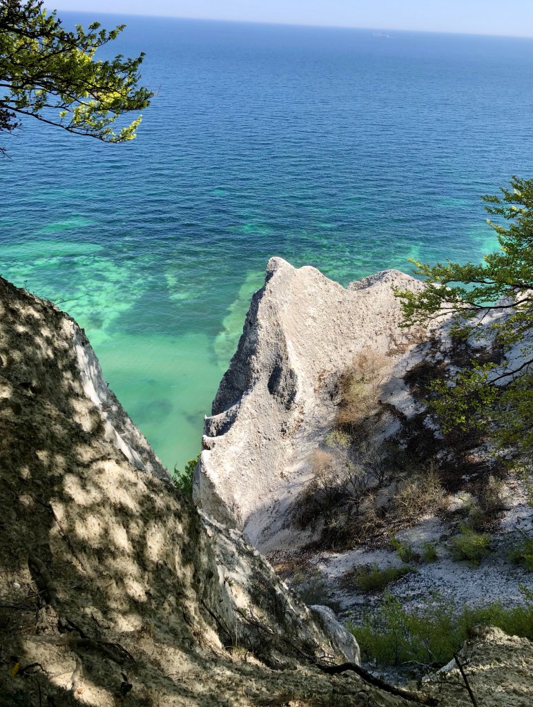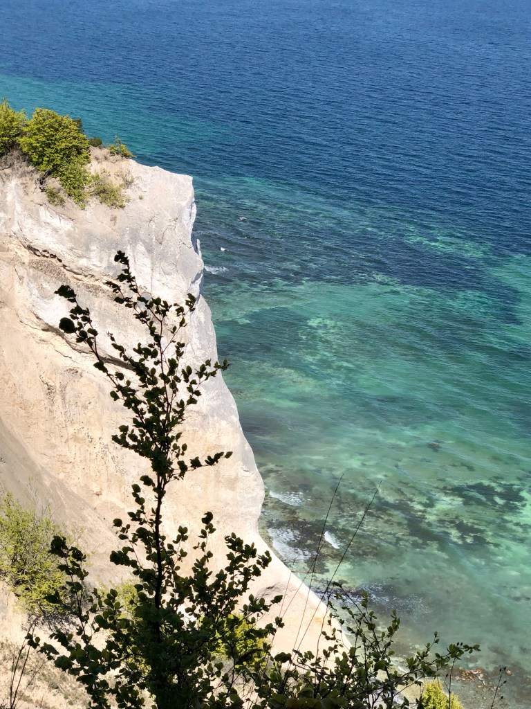 The turquoise blue water is made from flaking chalk dissolving in the ocean.