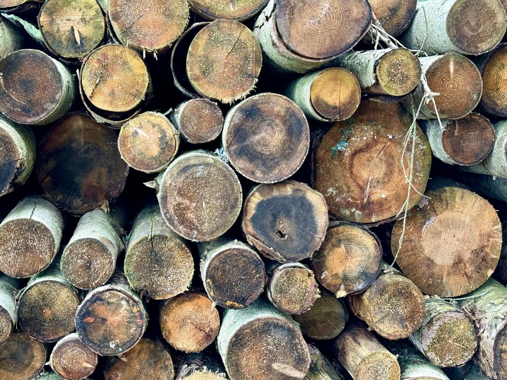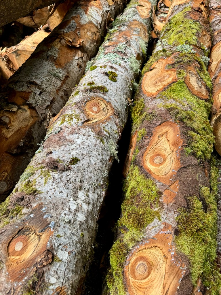 Logging must be big business from all the stacks of logs seen. Perhaps logging is done in winter when the ground is frozen so tires don’t get mired in mud. The exception was today’s tractor. All I spied was the crane towering above the trees noisily turning, twisting, lowering, and raising its clamp to move cut trees. It was as if a mythical character’s arm shot out of the ground to grab trees.