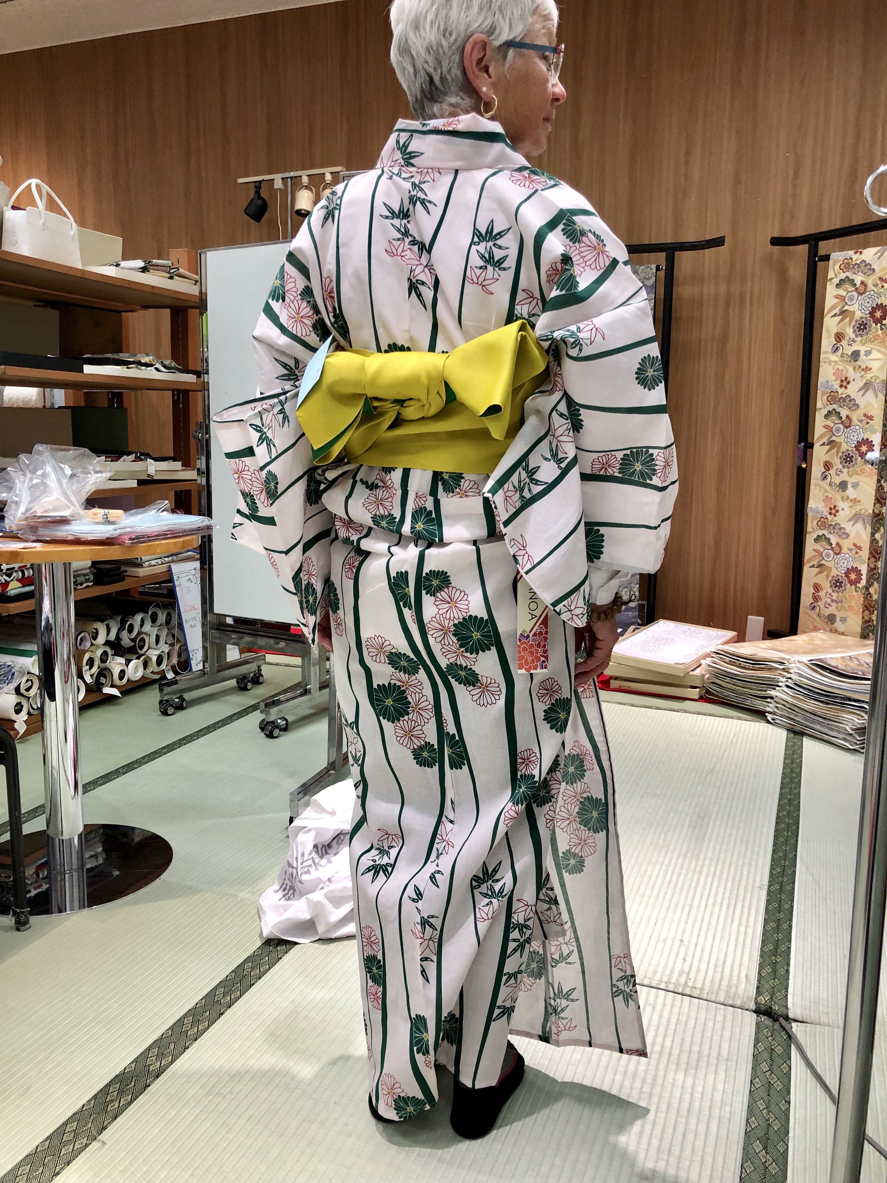 All I wanted was a simple yukata like the ones presented each night for the o-henros to wear. The shop ladies insisted this was a yukata though I showed her pictures of the comforter attire I was in search.