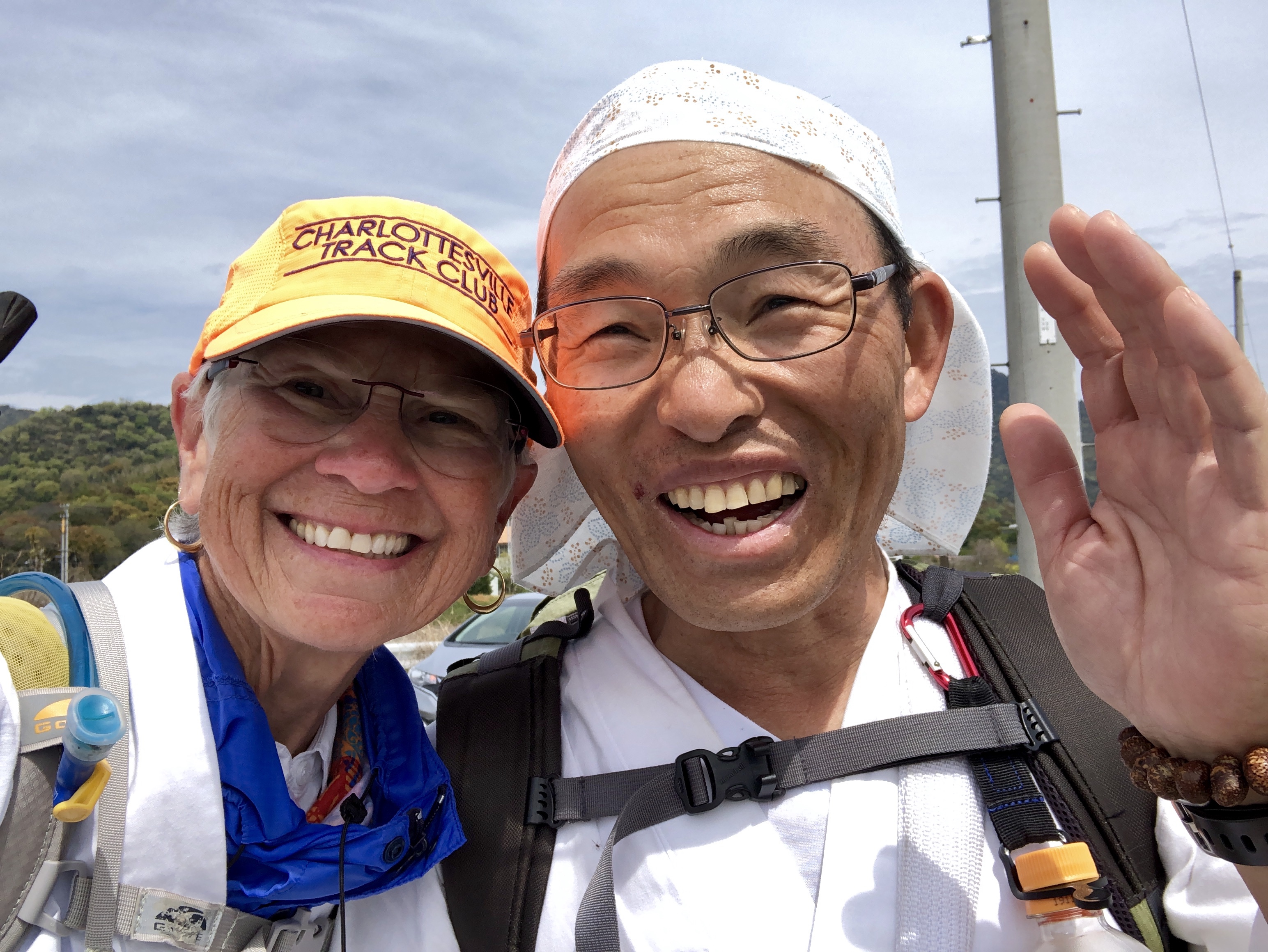 One o-henro points out how his walking staff is inches shorter since the start. It’s worn away with miles. Fortunately the miles have been more gentle on our bodies.