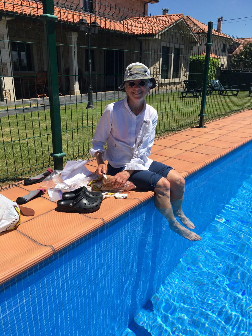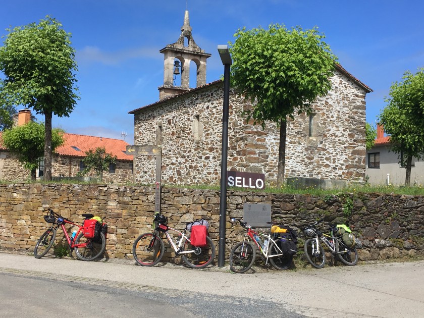 These are the images that will become flash memories…moments without the pack, freshly squeezed orange juice, open churches, sello(stamps) documenting my walk, the whirling sound of approaching bikes, blue skies, and sun.