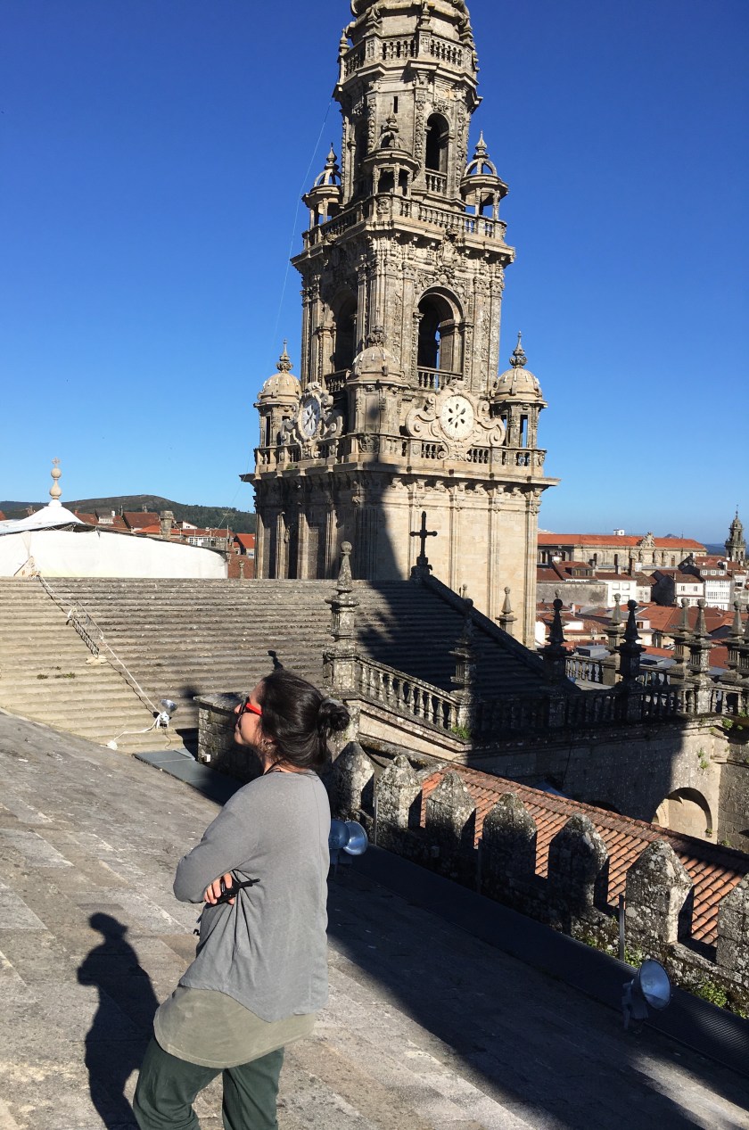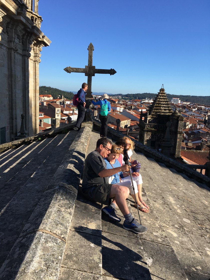 Up on the rooftop tour of the Cathedral of Santiago de Compostela. The roof was angled steps allowing soldiers quick movement.
