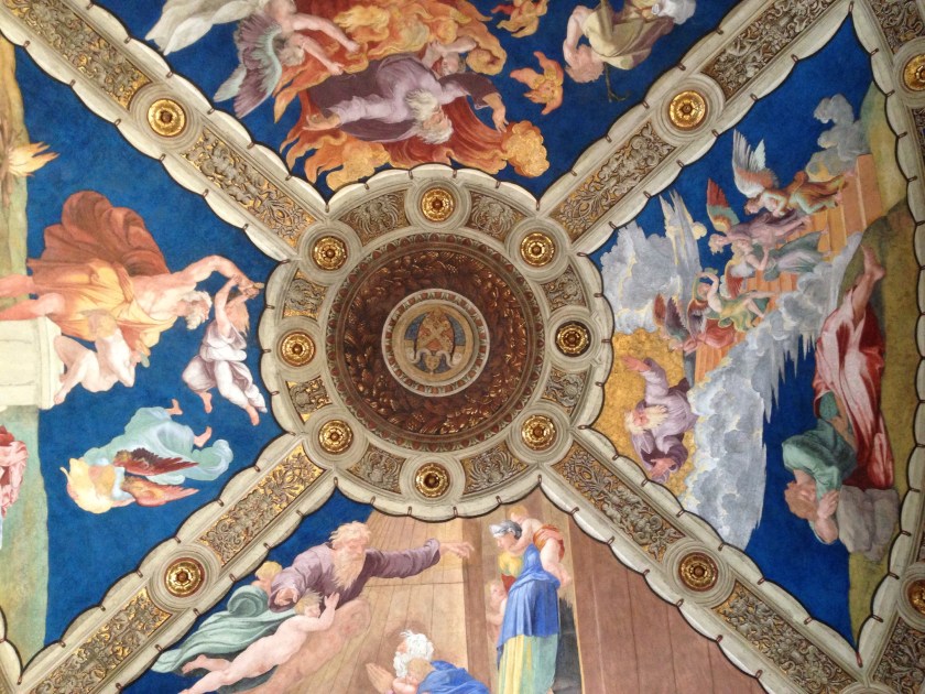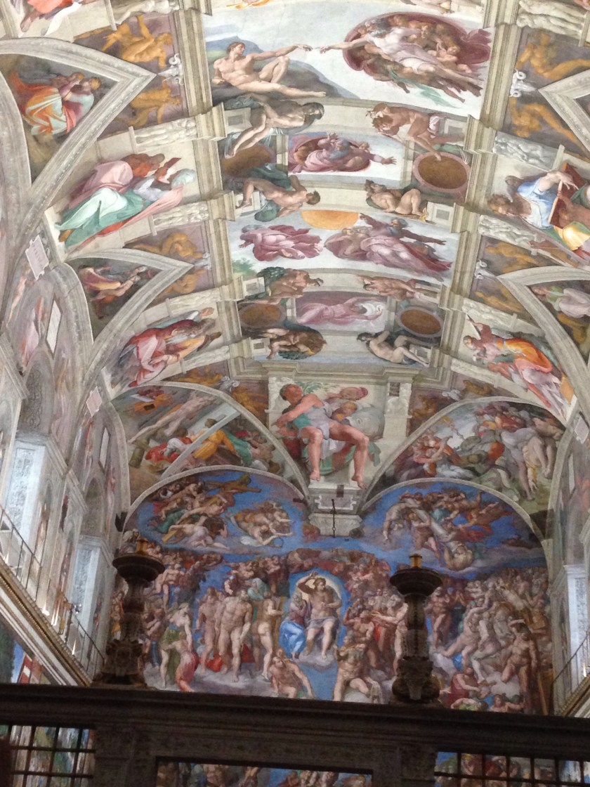 Michelangelo’s ceiling frescoes, Sistine Chapel. MYTH DEBUNKED. Michelangelo did not paint lying down. He designed a curved scaffolding system allowing him to work standing.