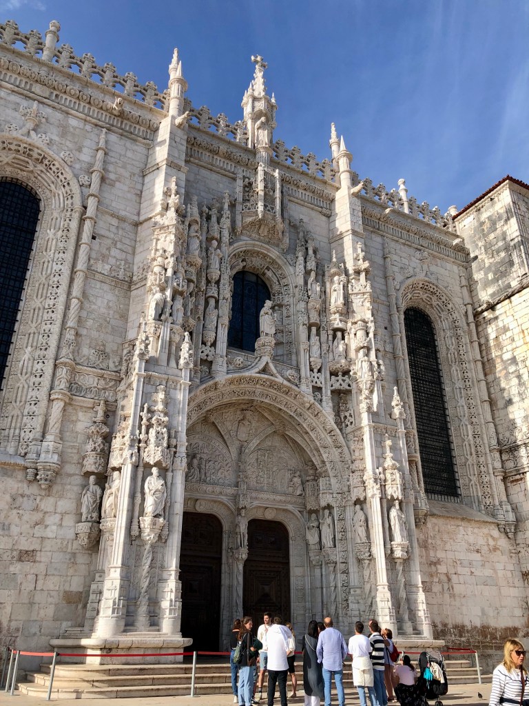 The Jerónimos Monastery was built to commemorate Vasco da Gama. He was the first European to sail around Africa to India. Vasco da Gama died in India during his third voyage. His body, albeit well salted, was brought back to be buried at Jerónimos Monastery.