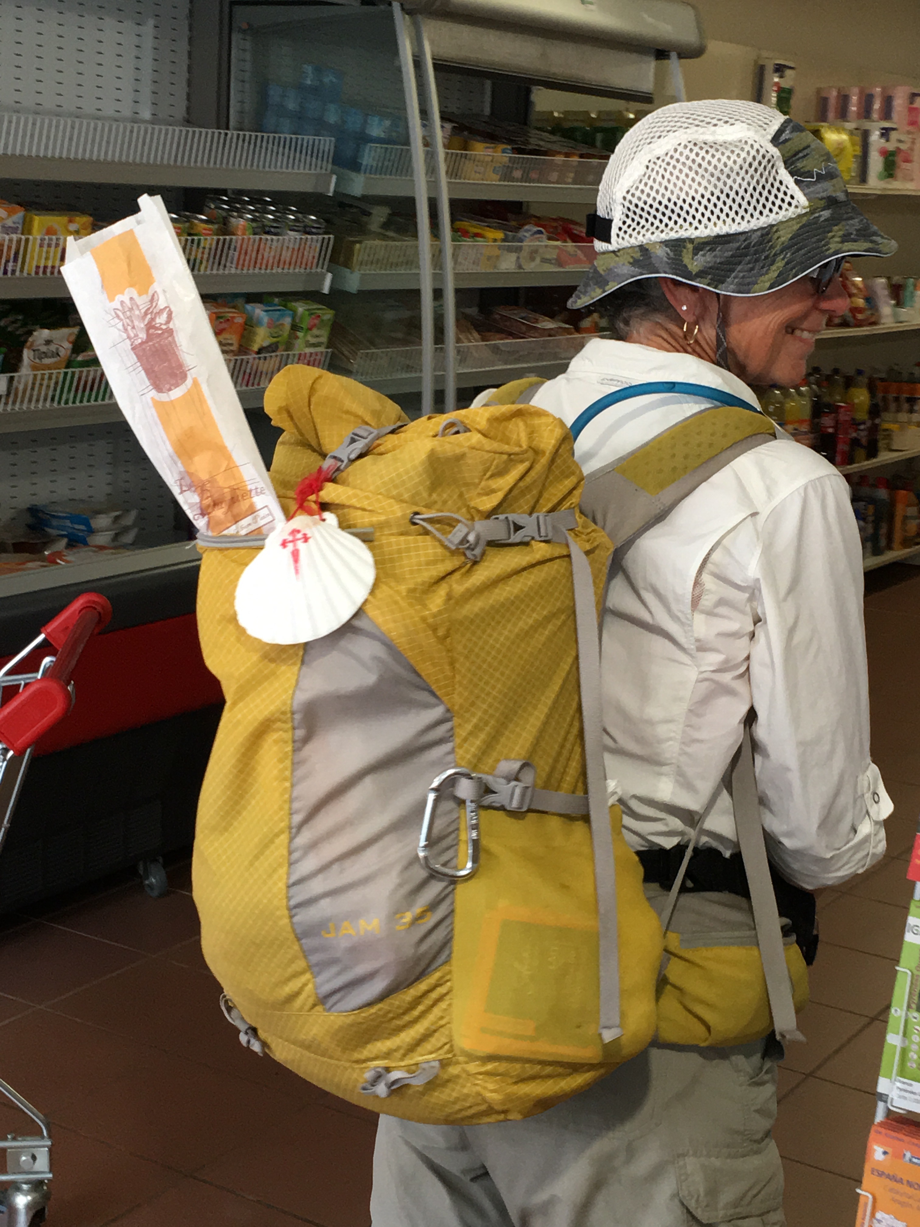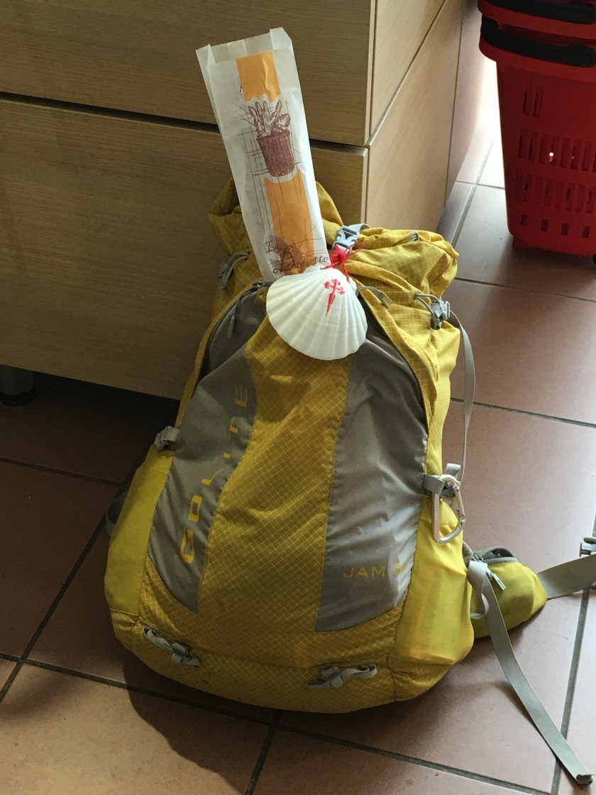First rain on the Camino and I discover my Marmot Gortex jacket is no longer water proof. The immediate solution is a 5€ green vinyl rain poncho. I look as have been consumed by a sweet pea and am only less wet.