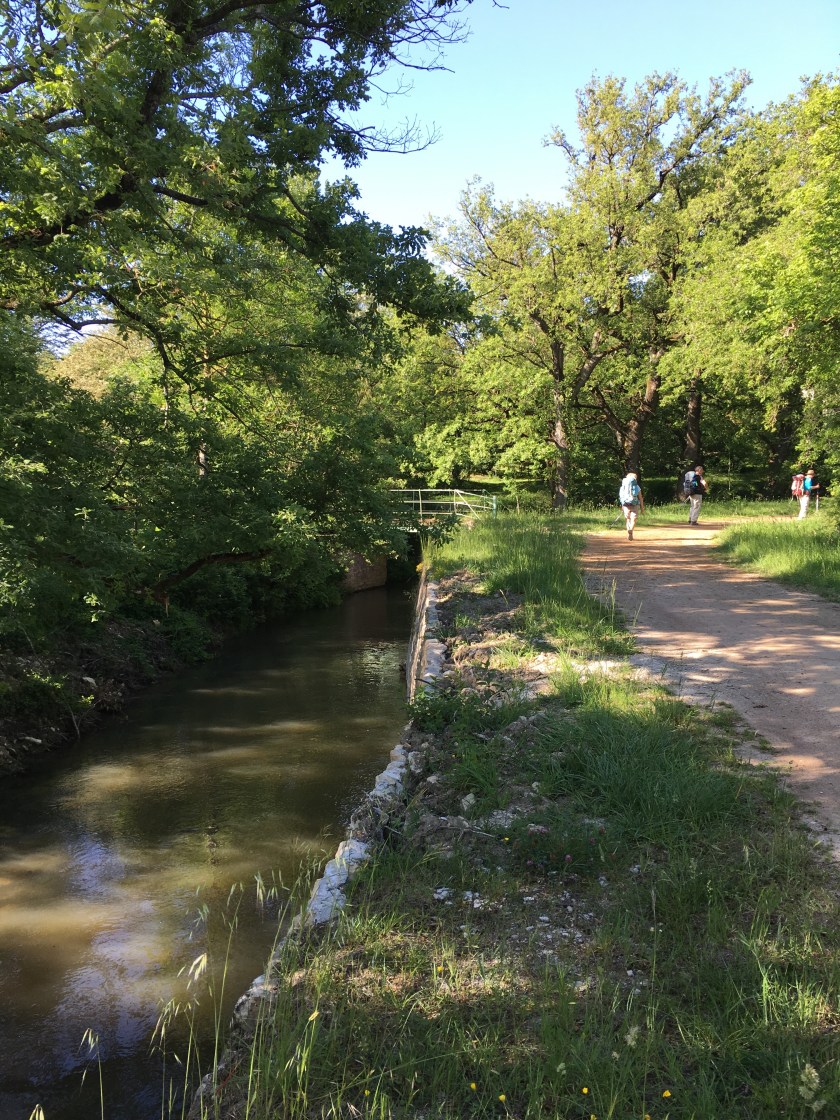The Camino provides…The French-Three-Some and I separate company today. As they ends their walk, Françoise offered the standard goods: Compeeds (blister treatment) and zip-lock bags. After two rains in two days, she insisted the loan of her rain poncho. Through I have a backpack cover, Gortex rain jacket and paints, yesterday’s rain totally soaked my pack. A poncho better protects the bag and walker; albeit, hotter and more weight in my pack.